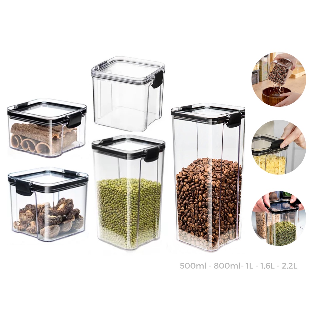 Kit Pote Hermético Quadrado Para Alimentos Dispensa Acrílico Resistente Conjunto