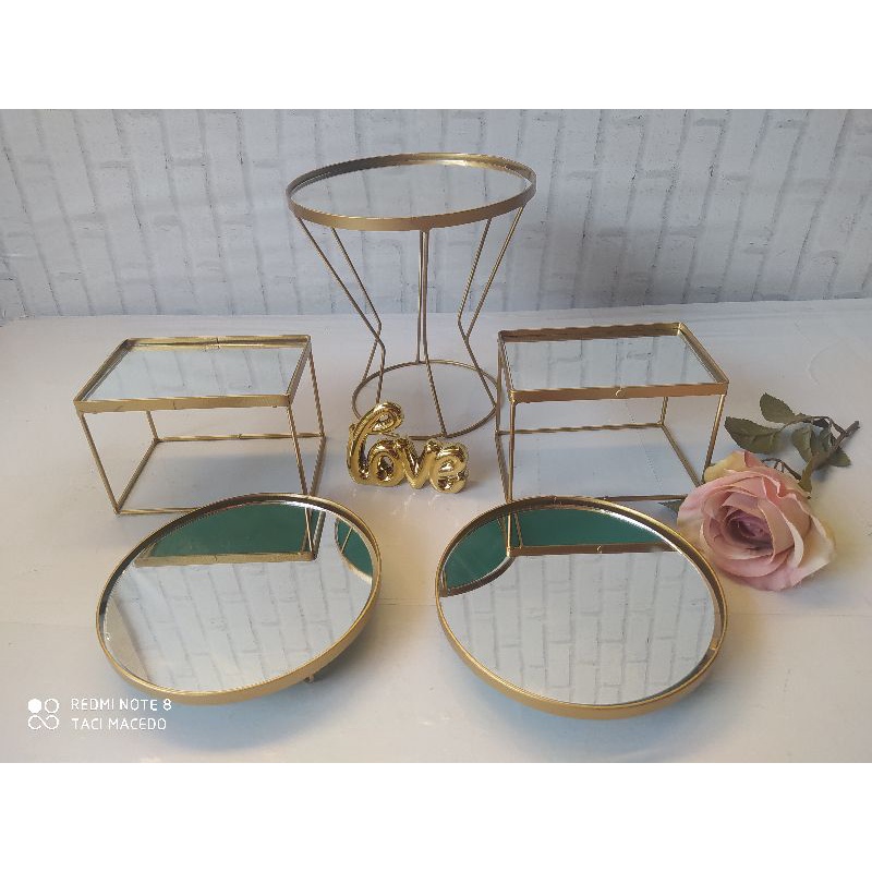 kit Decorativo Arco De Mesa Dourado + Boleira e Doceiras com 5 peças Decoração Festas Eventos