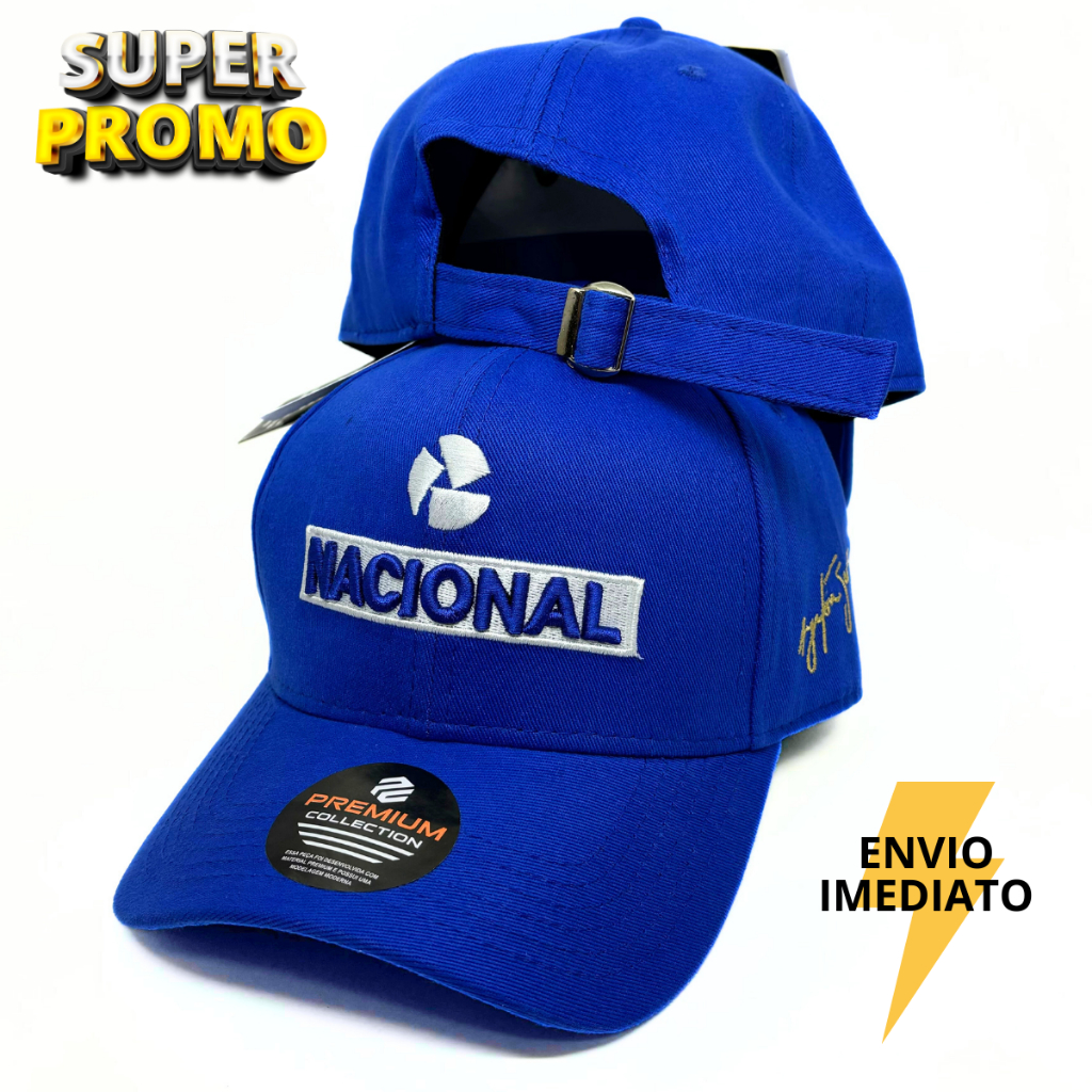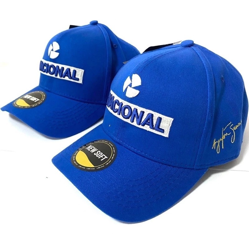 Boné Nacional Ayrton Senna Retro F1 Linha Premium Aba Curva Azul