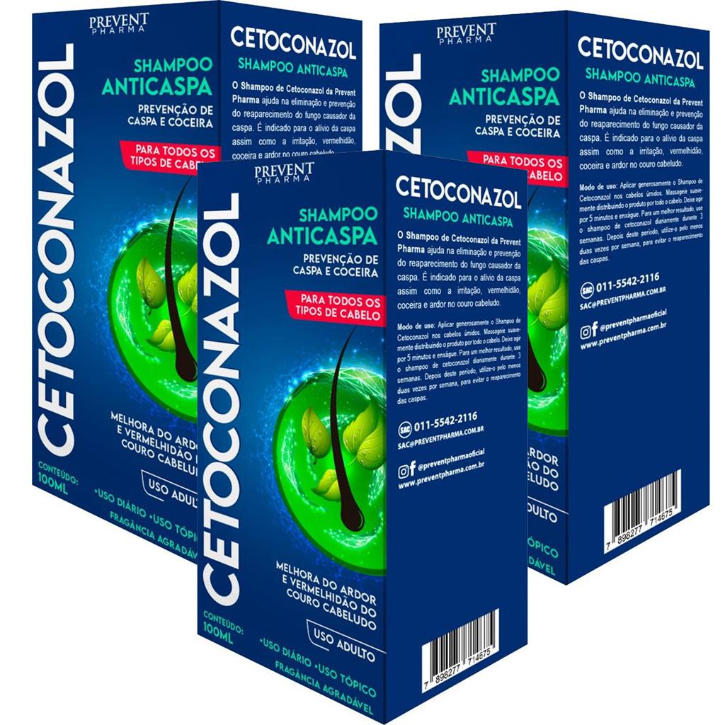 Kit 3 Shampoo Cetoconazol Prevencao Anticaspa Coceira 100ml
