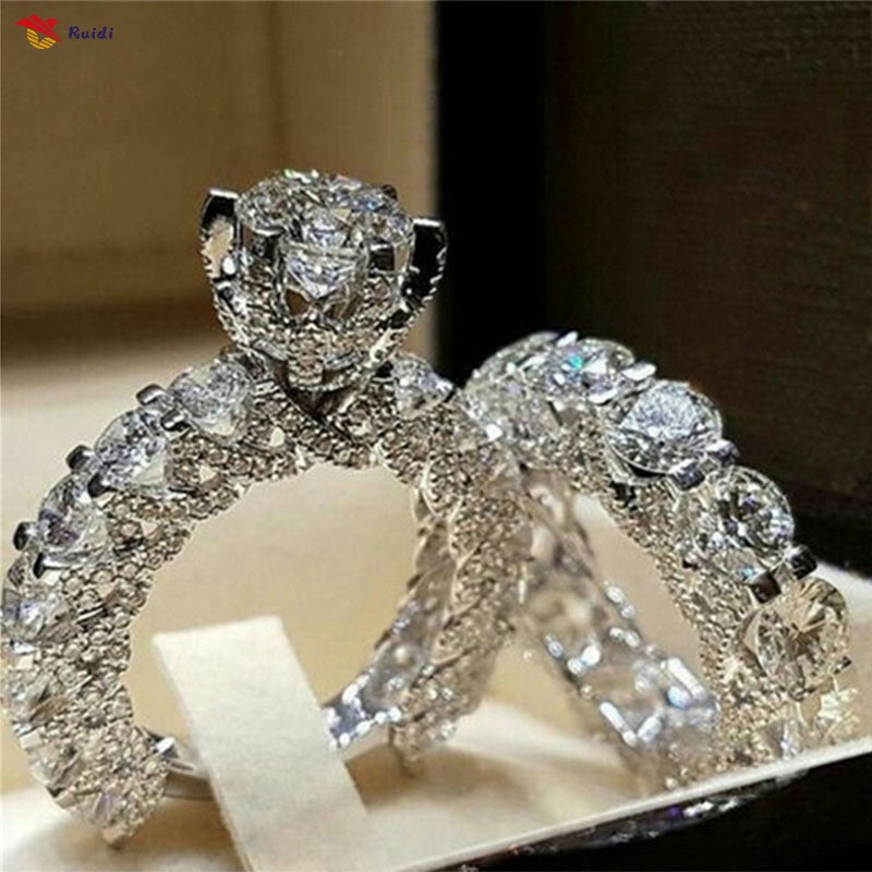 2 Peças Anel De Dedo Circular De Luxo Para Mulheres / Noivado / Casamento