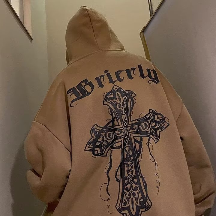 Casaco Com Capuz Coreano Masculino De Tamanho Grande Suéter Versão Coreana Do Pulôver Solto Estampa Retrô De Casal