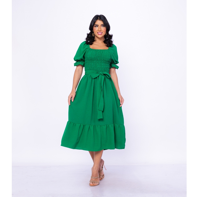Vestido Longo Feminino Com Lastex e Manga Moda Verão 3RD SD5011