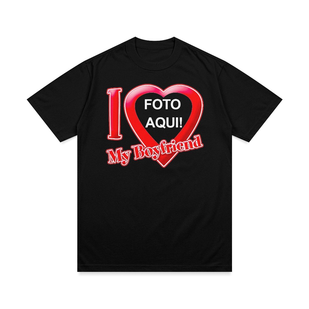 Camiseta Personalizada com Foto Coração I LOVE MY GIRLFRIEND - Eu Amo Minha Namorada 100% Algodão