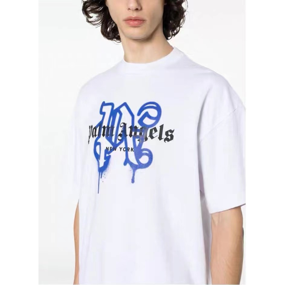 24SS New Palm PA City Limited Graffiti Inscrição Sânscrito Carta Anjos Logotipo Impresso Camiseta De Verão Moda Européia E Americana Manga Curta Popular De Pescoço Redondo