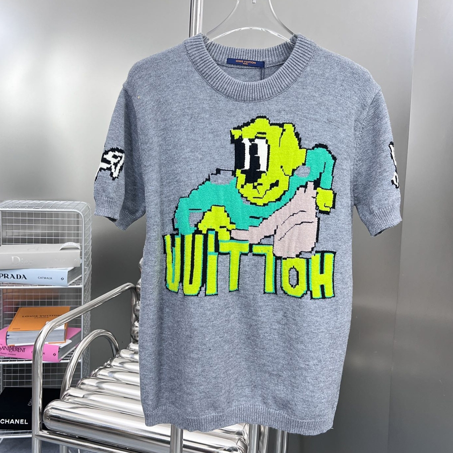 Louis Vuitton 24 Mascote da Primavera Precoce Mascote da Primavera Camiseta de Lã Tricotada de Alta Qualidade Lv Moda Casual Manga Curta Homens Mulheres Mesmo Estilo