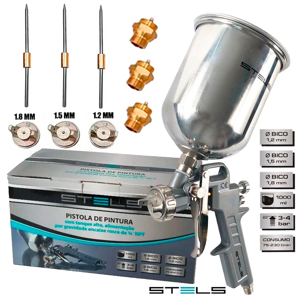 Pistola Pintura Gravidade Caneca 1000 Ml Rosca 1/4