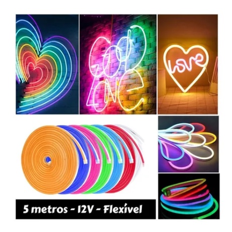 Fita de Led Neon Flex 12v 5 Metros Corte 2,5cm Cores Diversas