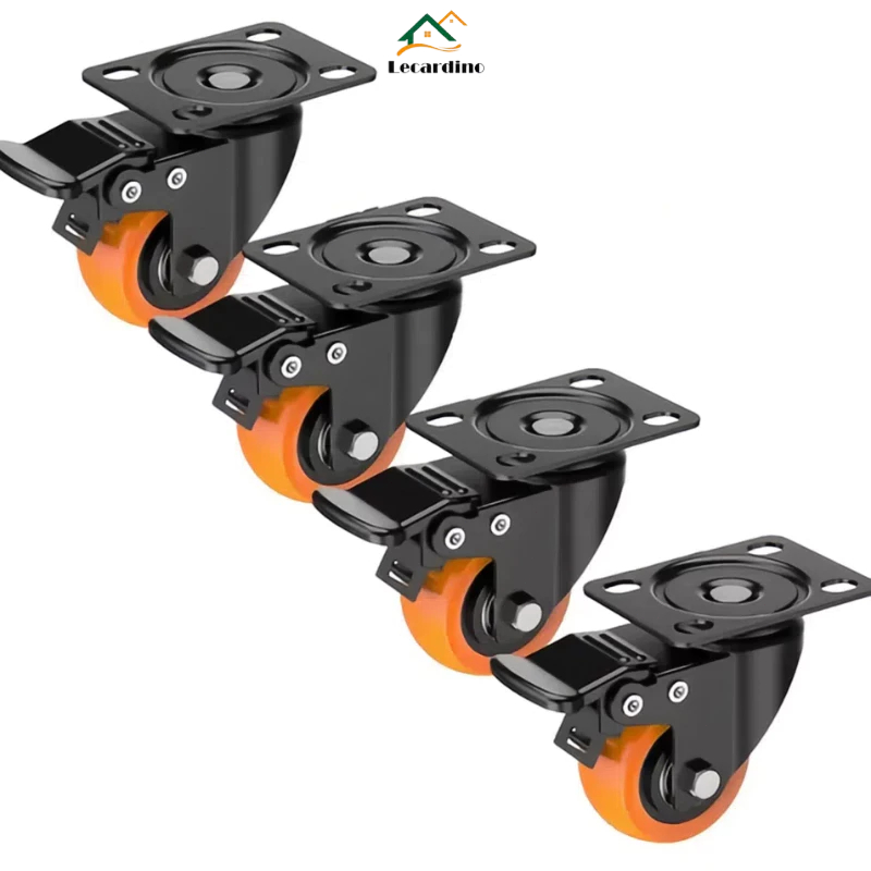 Rodinhas kit 4 Rodízio Anti-risco Giratórias Com Freio e Trava Rodas Super Reforçada 2 Polegadas Cor Preta/Laranja