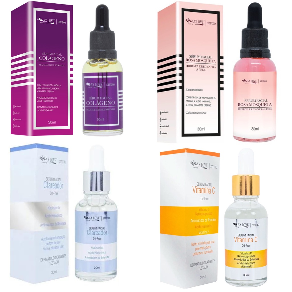 Kit c/ 3 Sérum Max Love Vitamina C + Sérum 3 em 1 + Sérum Rosa Mosqueta