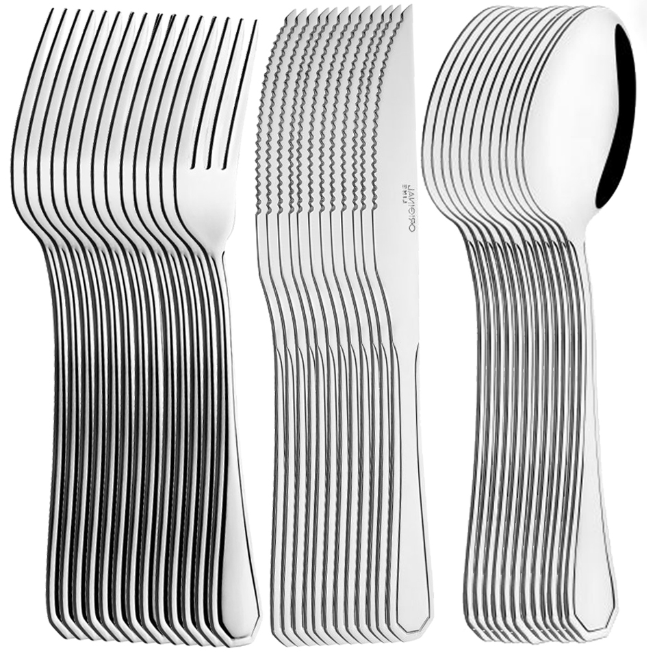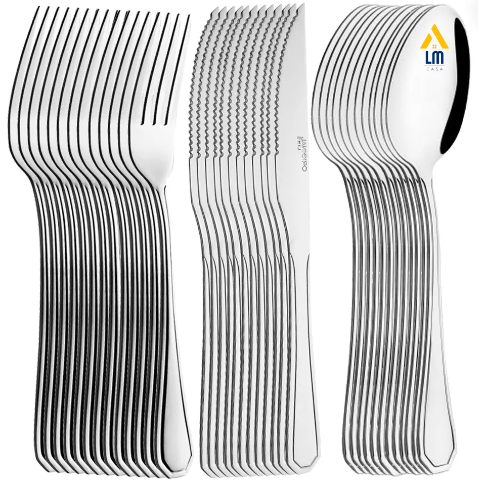 Conjunto Jogo de Talheres 72 peças Aço Inox 24 Faca 24 Garfo e 24 Colheres de Mesa Casa Para Restaurante