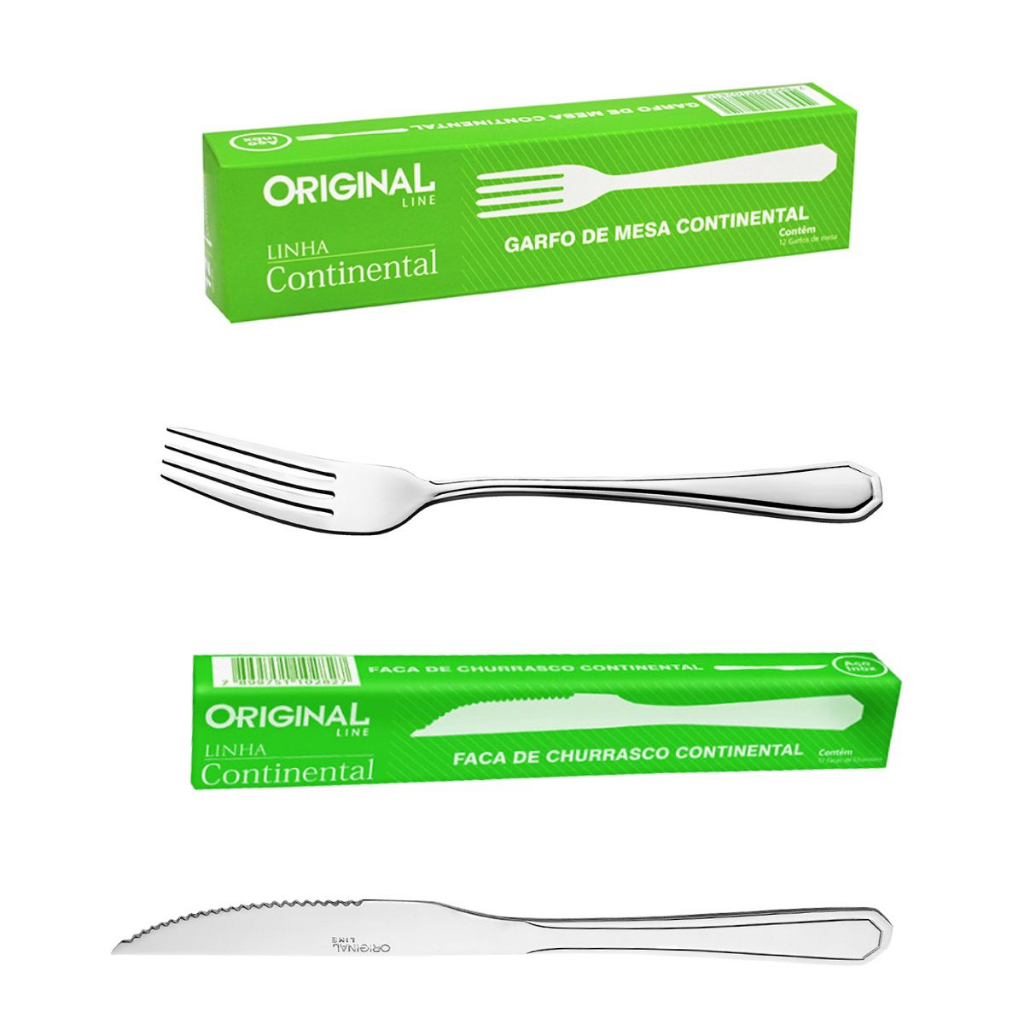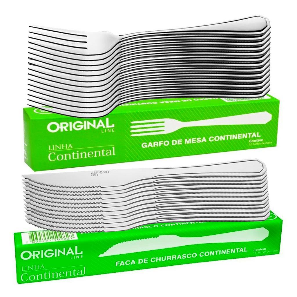 Jogo 24 Peças Garfo Faca Inox Continental Bar Buffet Refeicao Restaurante Cantina Empresa Escola Mesa
