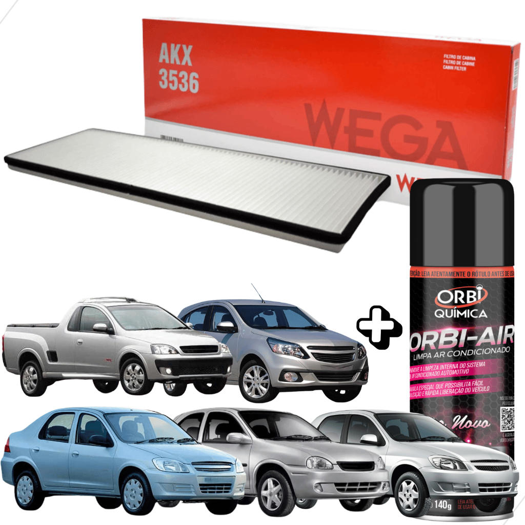 Kit Filtro Ar Condicionado Cabine + Spray Higienizador + Orbi-Air Celta/Corsa/Prisma/Ágile