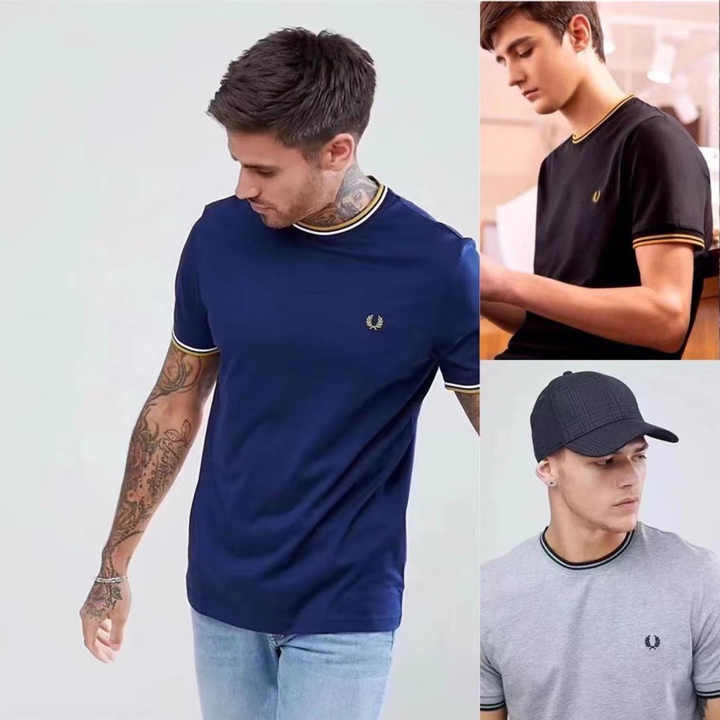 FRED PERRY Maisui Summer New Men's Pure Cotton Camiseta De Manga Curta De Algodão Puro Para O Bottoming Moda De Pescoço Redondo