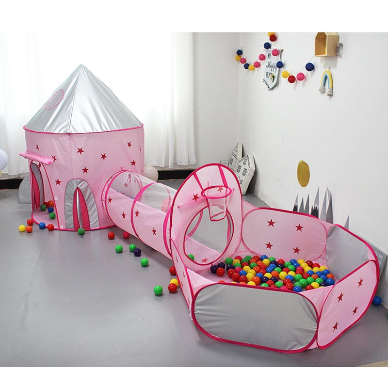 Barraca Infantil Tenda/Toca, Rosa Infantil 3 em 1 com Tunel Para a Diverção das Criancas.