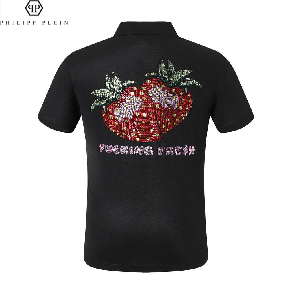 Philipp Plein Trendy Diamond Men Pólo de Baseball Camiseta Pólo de Baseball Camiseta Nova Strawberry Hot Diamond Design Algodão Puro Respirável Manga Curta de Alta Qualidade 9044