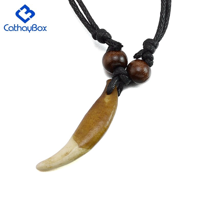 Homens Tribal Lobo Dente Charme Colar De Pingente De Dentes Jóias Ajustável Cabo Preto Cb03B015