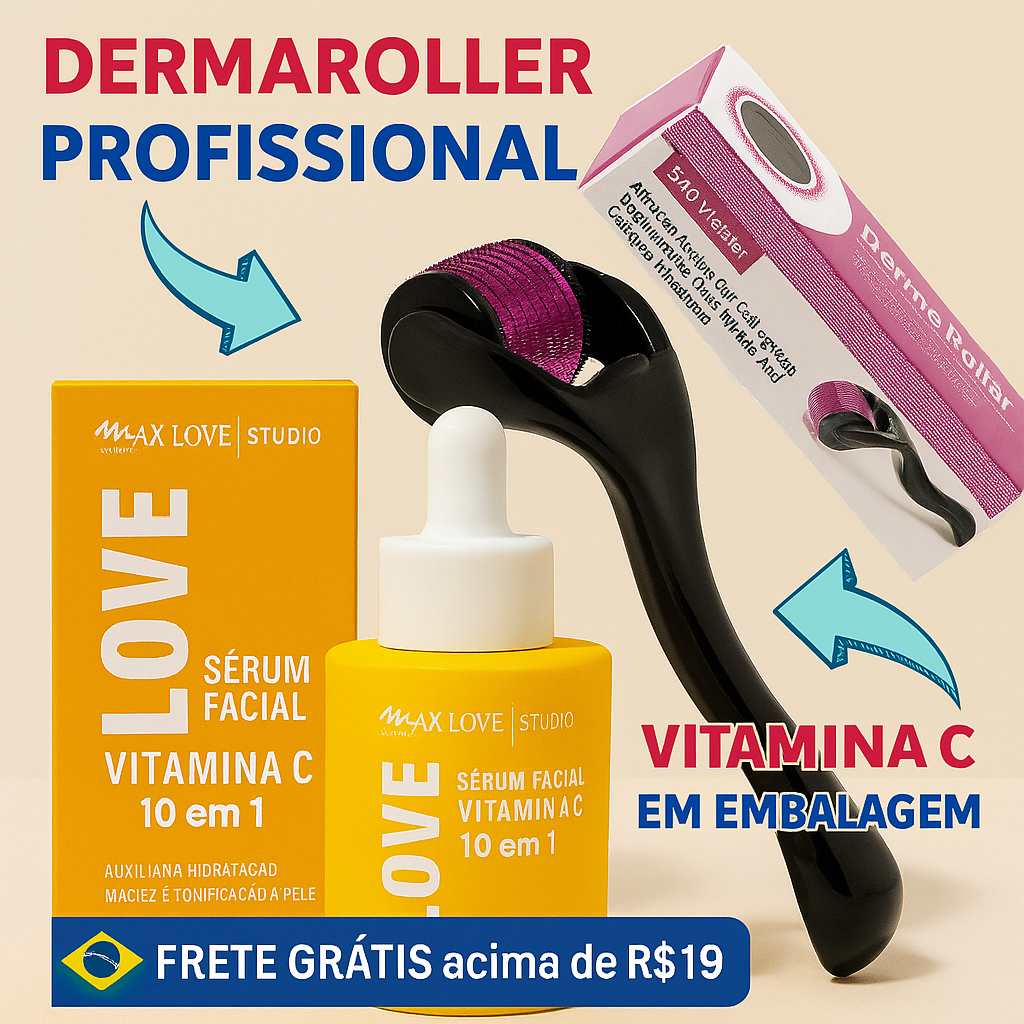 Sérum Vitamina C Kit Com Microagulhamento Dermaroller Original Profissional Para Usar em Casa