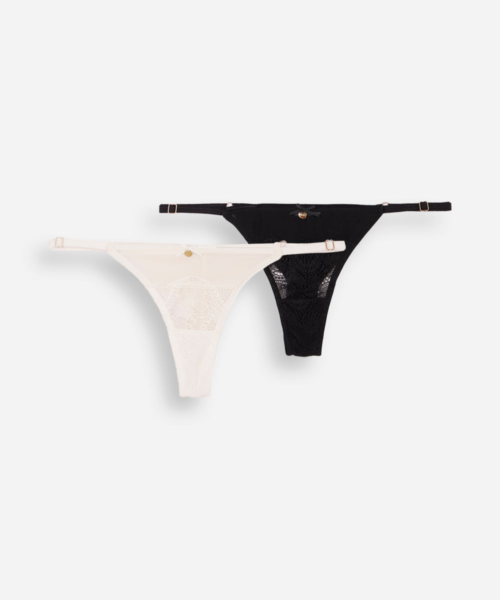 kit de 2 calcinhas fio dental com renda e tule poá colorido