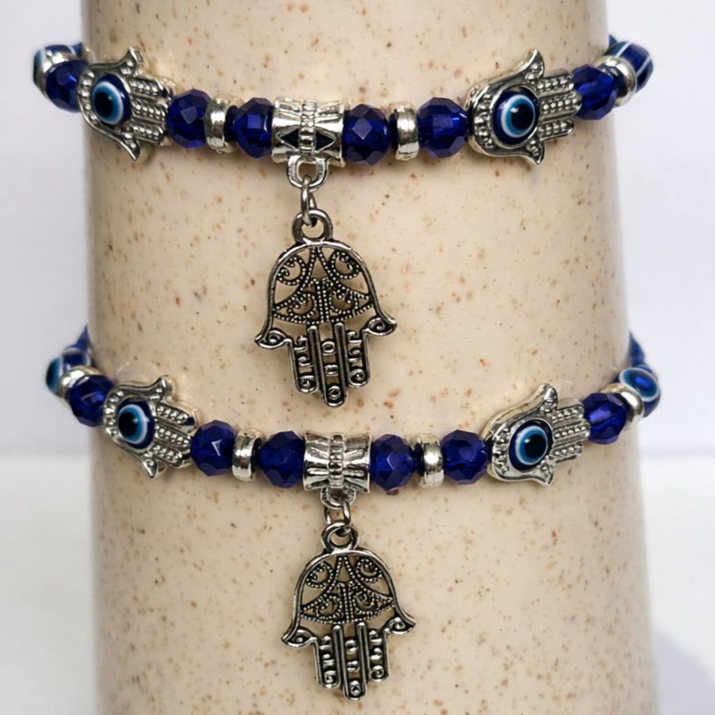 KIT COM 2 PULSEIRAS NO TEMA OLHO GREGO + MÃO DE FÁTIMA