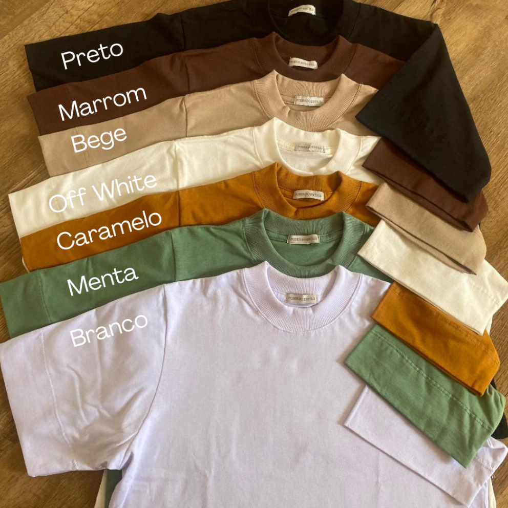 T-Shirt Feminina Camiseta Gola Alta 100% Algodão Básica Lisa Várias Cores