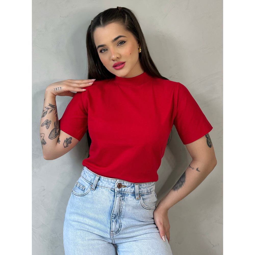 T-shirt gola alta 100% ALGODÃO Camiseta feminina básica Lisa Várias Cores Blusa feminina Manga Curta