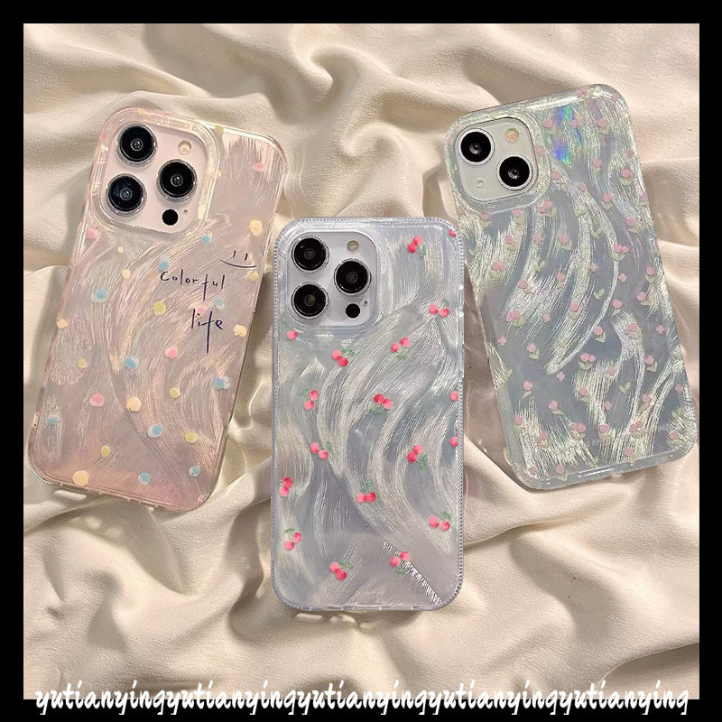 Simples Tulipa Fofa De Cereja Caixa De Pontos De Onda Colorida Compatível Para IPhone 13 7Plus 15 11 12 14 Pro MAX 8 15 7 6 6S Plus XR XS X SE 2020 Capa De Cartão Laser De Luxo Com Brilho Perolado