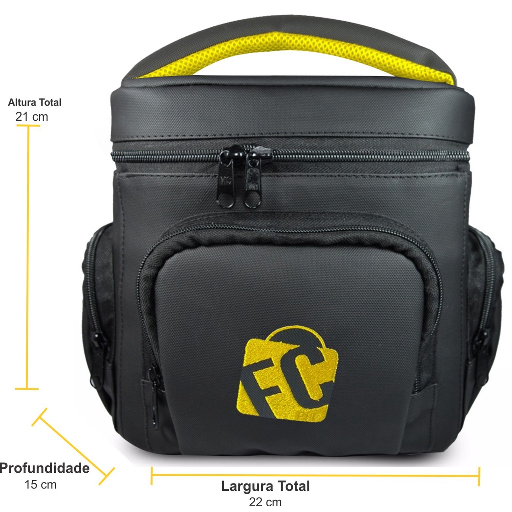 Bolsa Térmica Fitness Luxo Marmita Preto Lancheira Detalhe Amarelo