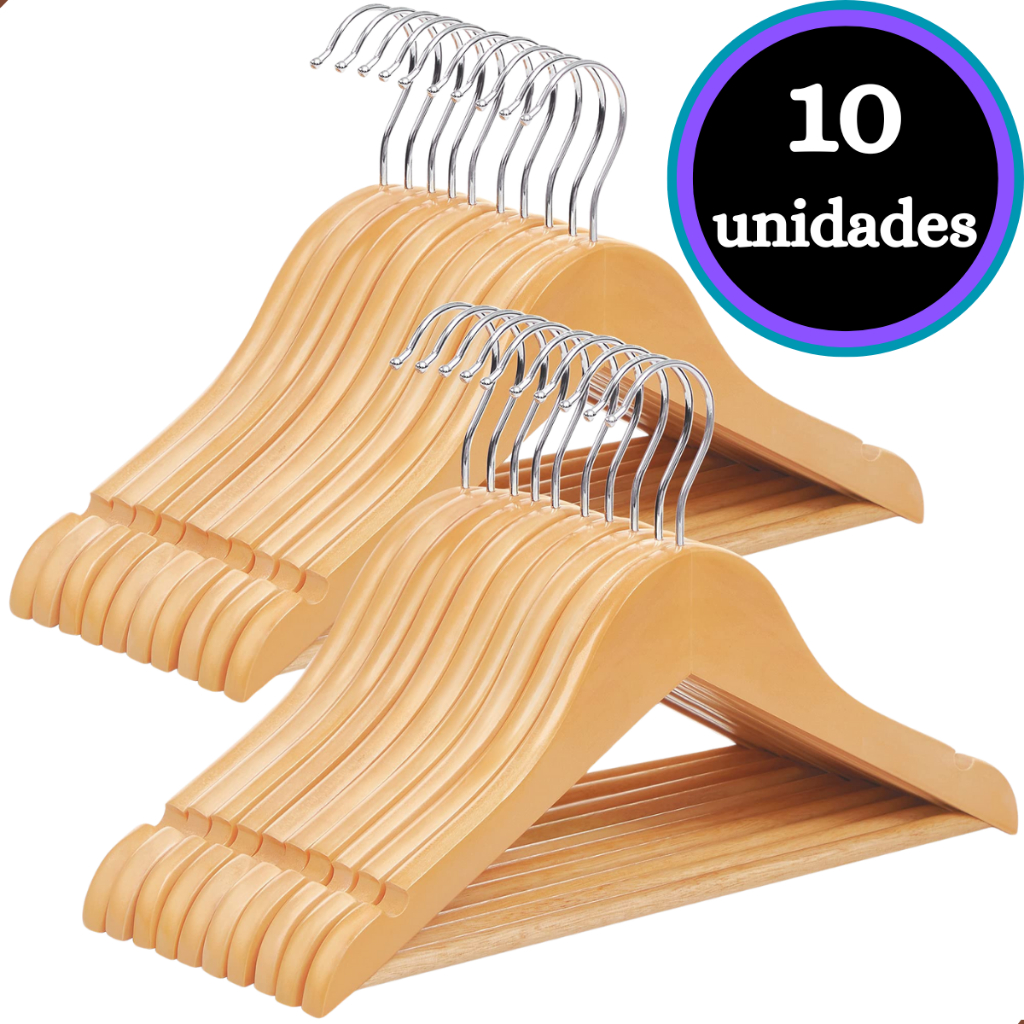 Kit 10 Cabides De Madeira Adulto Verniz Closet Armário Roupa