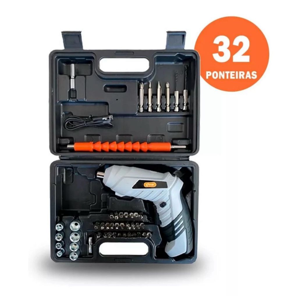 Parafusadeira Sem Fio portátil Recarregavel 32 ponteiras + maleta com acessórios