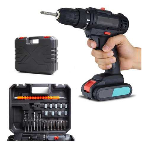 Furadeira Parafusadeira Preta 110v 220v Profissional 21v Com Maleta E Acessórios Sem Fio Bivolt Bateria Bits Soquetes Ponteiras Brocas