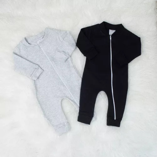Macacão de Zíper para Bebê Menino Preto e Cinza 2 Peças 100% Algodão