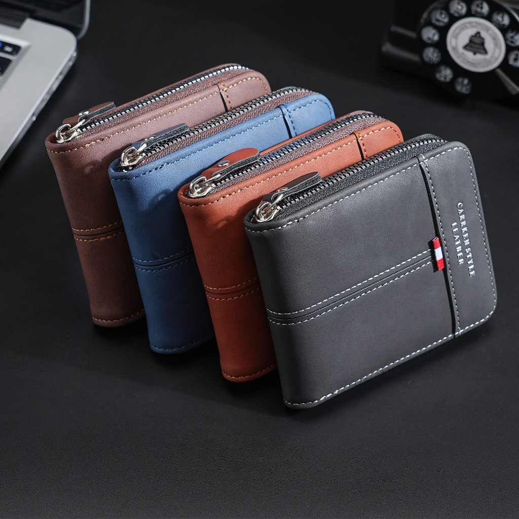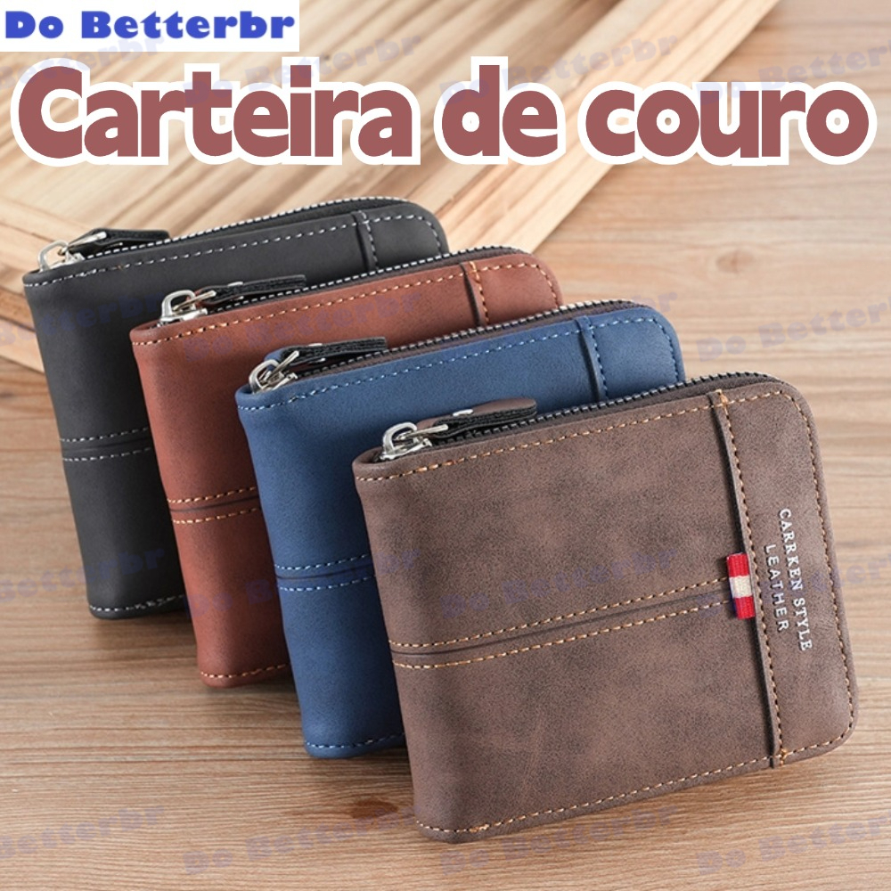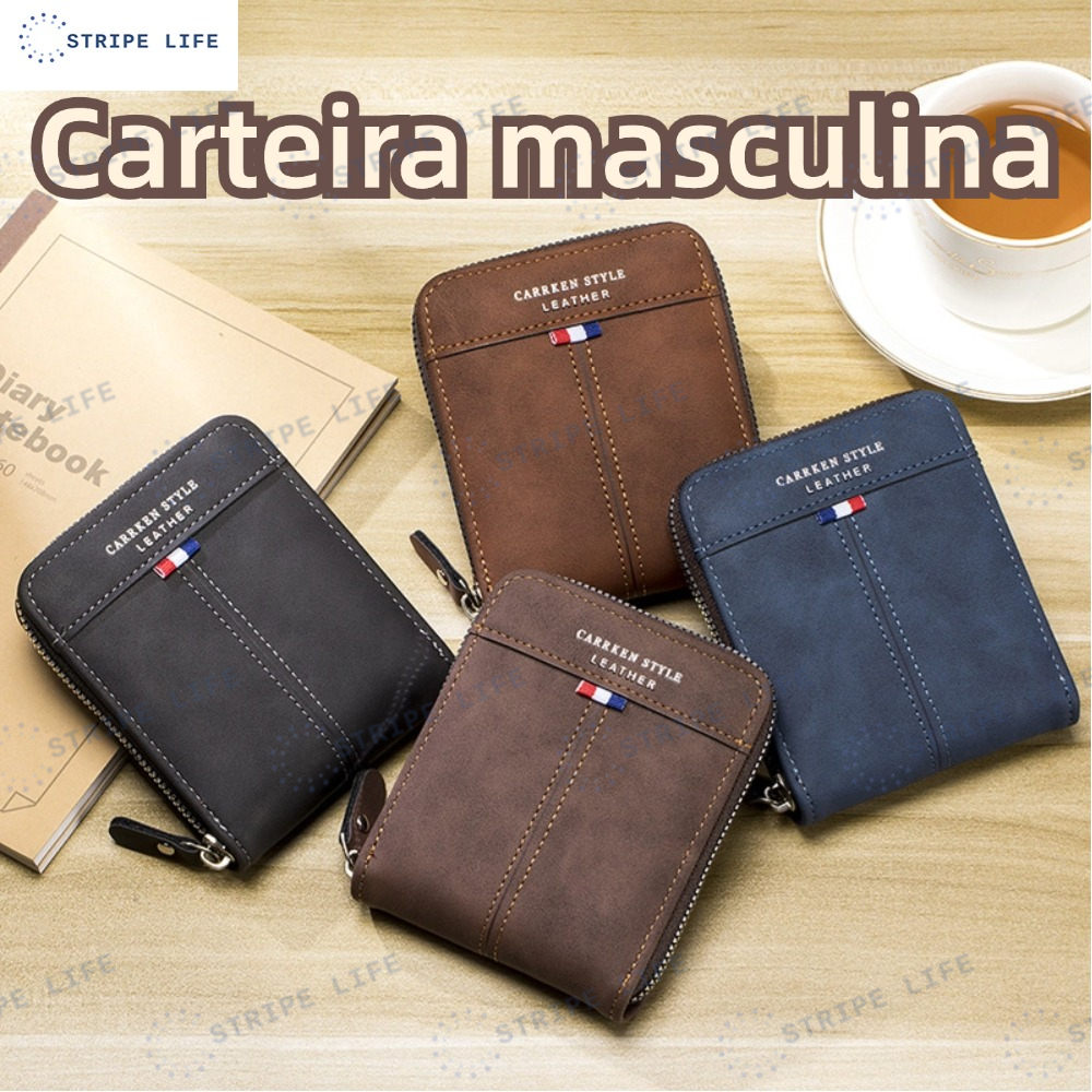 Homens Novo Estilo Carteira de Couro com Zíper Carteira Curta Multifuncional Porta-Carteiras Multifuncionais Porta-Cartões de Identidade