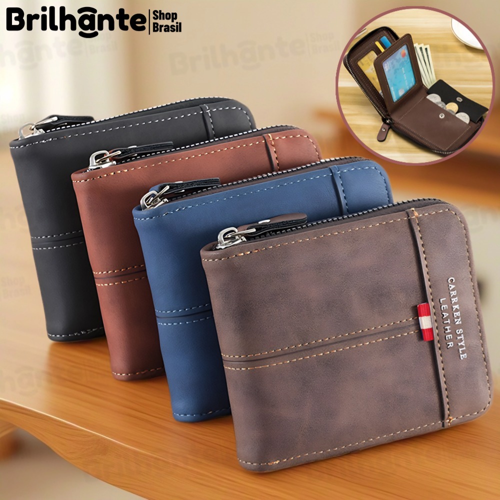 Novo Estilo Carteira de Couro Multifuncional com Zíper e Porta-Cartões de Identidade