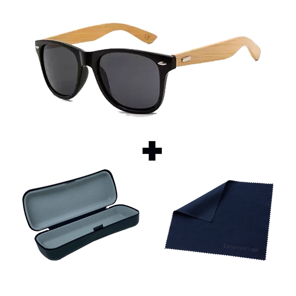 Kit Óculos De Sol Bambu + Kit Case E Flanela Proteção UV