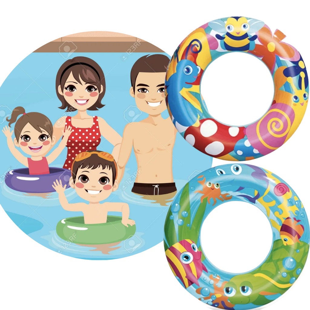 Boia Circular Infantil Inflável 60cm Colorida Animais Sortido p/ Cintura Piscina Praia Calor Verão Parque Aquático Crianças