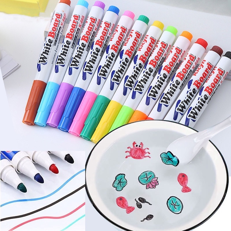 8/12 Cores Caneta Marcadora De Quadro Branco Apagável Não Tóxica Sinal Flutuante De Água De Desenho Para Estudantes Suprimentos Escolares