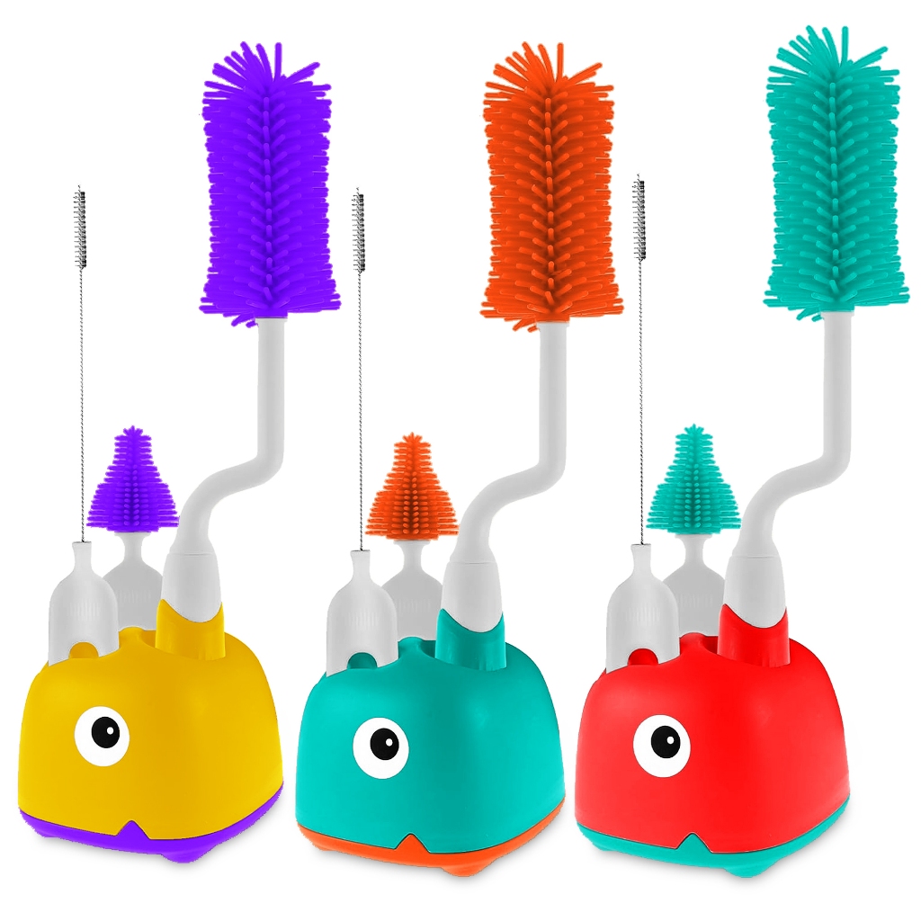 Kit Escova de Mamadeira de Silicone 3 em 1 com Suporte limpeza de copo bico chupeta Infantil