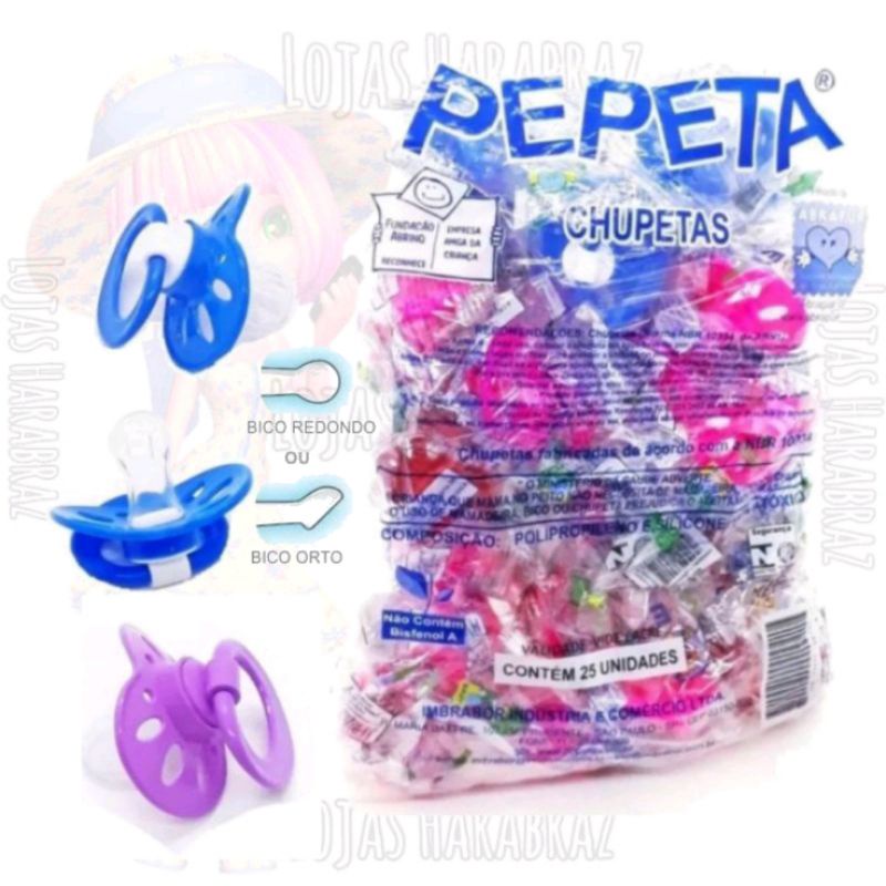 Chupeta Pepeta Pacote Com 10 ou 25 Bico de Silicone Ortodôntica Ou Redonda Fase 2