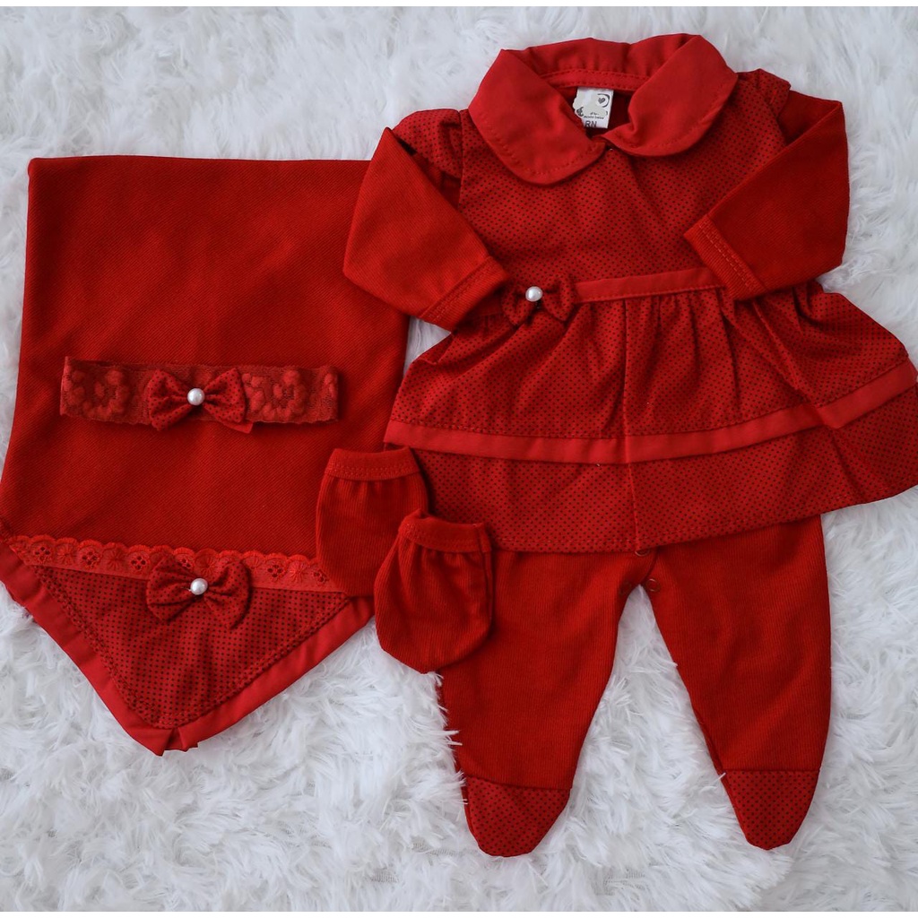 Saída De Maternidade Para Bebe Menina Vermelho 100% Algodão 5 Peças