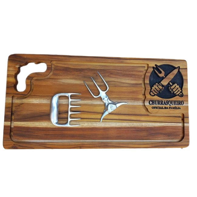 Tábua de corte para churrasco acompanha garra e tridente para carne modelo PERSONALIZADA COM NOME