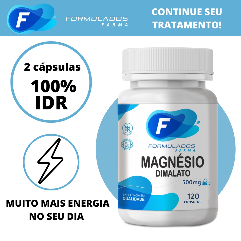 MAGNÉSIO DIMALATO 500mg 120 Cápsulas - Formulados Farma