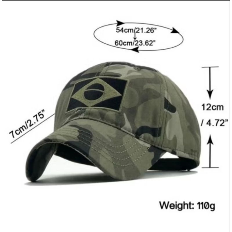 Boné Chapeu Brasil Militar Tático Camuflado Exército Bandeira Bordado Aba Curva
