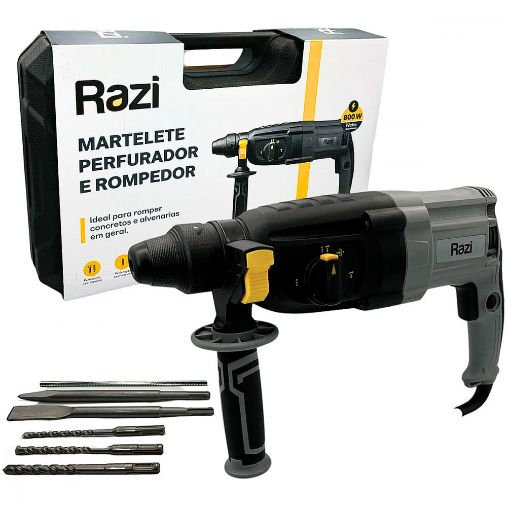 Martelete Razi Perfurador e Rompedor 3/8 800W 127V Amarelo - 30234 RZ-M8003J/M1