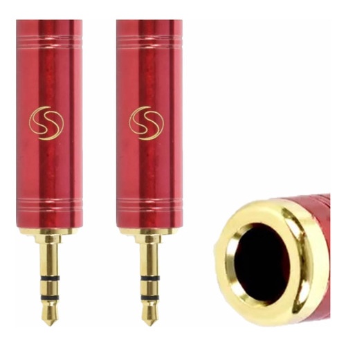 Plug Adaptador P2 P10 Estéreo Banhado a Ouro 18K Santo Angelo Vermelho Conector Fone