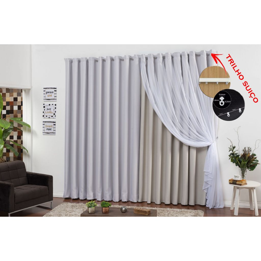 Cortina Trilho Suiço Blackout Blecaute Voil Liso Corta Luz 6 X 2,80 Alta Qualidade