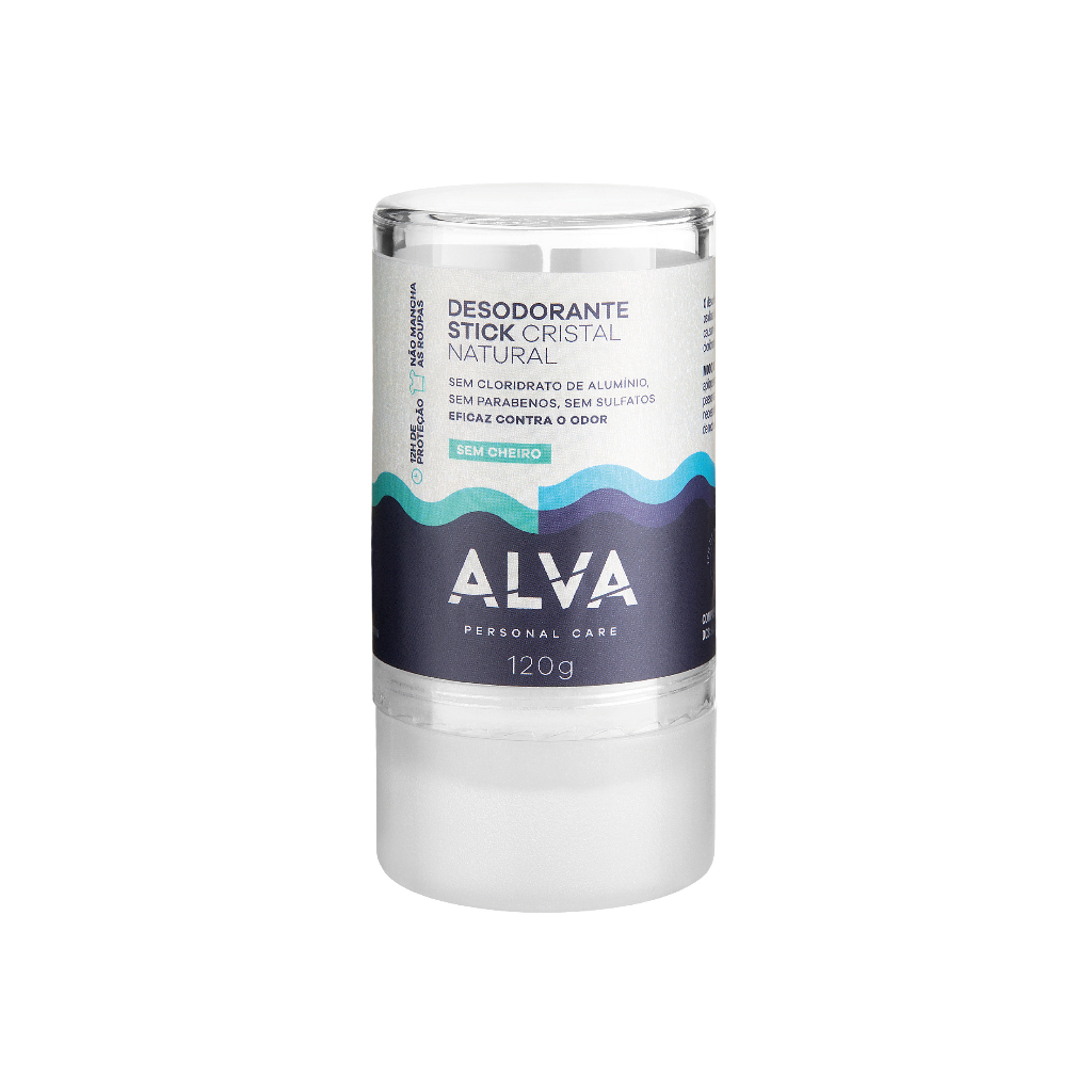 Alva Desodorante Cristal Natural Stick 120g pedra sal sem cheiro alumínio parabenos perfume vegano