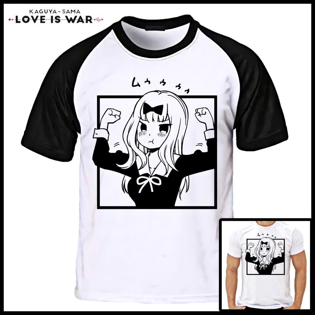 Camiseta Chika Anime Kaguya Sama Amor é Guerra Camisa Unissex Blusa Chika Anime Kaguya Blusa Raglan Branca e Preto