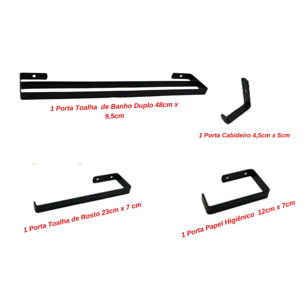 Kit Assessórios Para Banheiro Suporte Duplo Preto 4 Peças