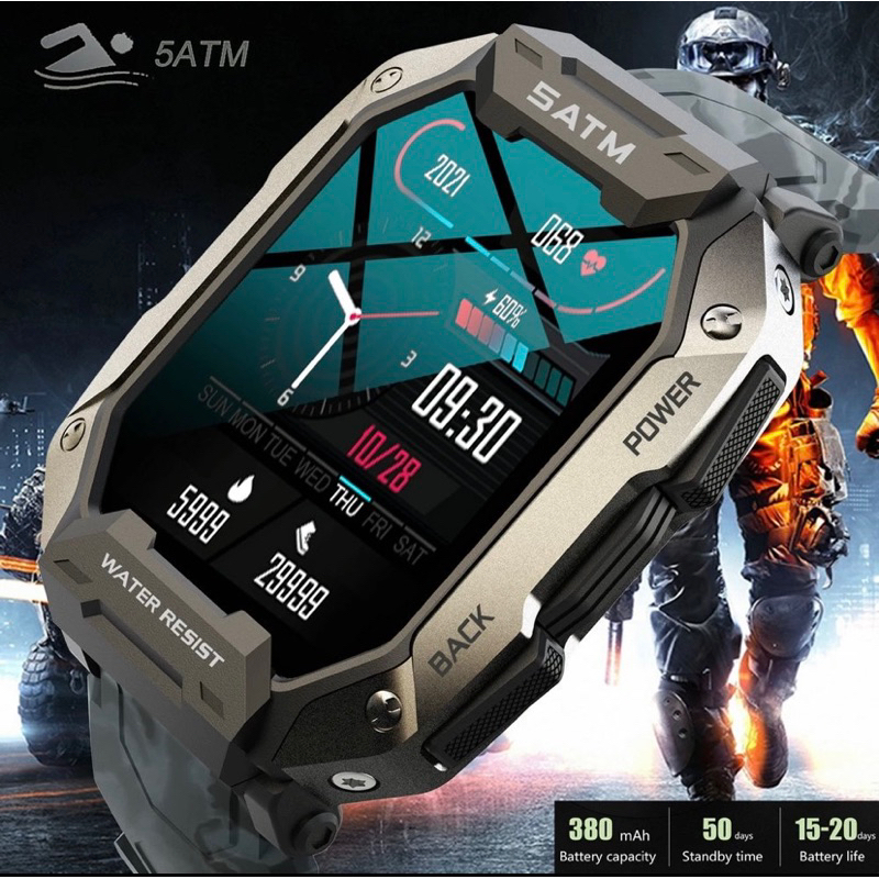 Relógio Smartwatch Militar Original C20 5ATM À Prova D'água 24h De Oxigênio Sangue Monitor De Frequência Cardíaca Longa Vida Útil Da Bateria Para Homens FILIEKEU